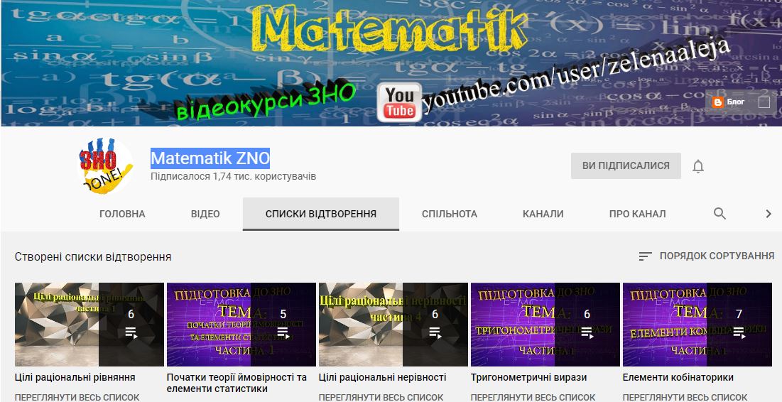 YouTube-канал "Matematik ZNO"